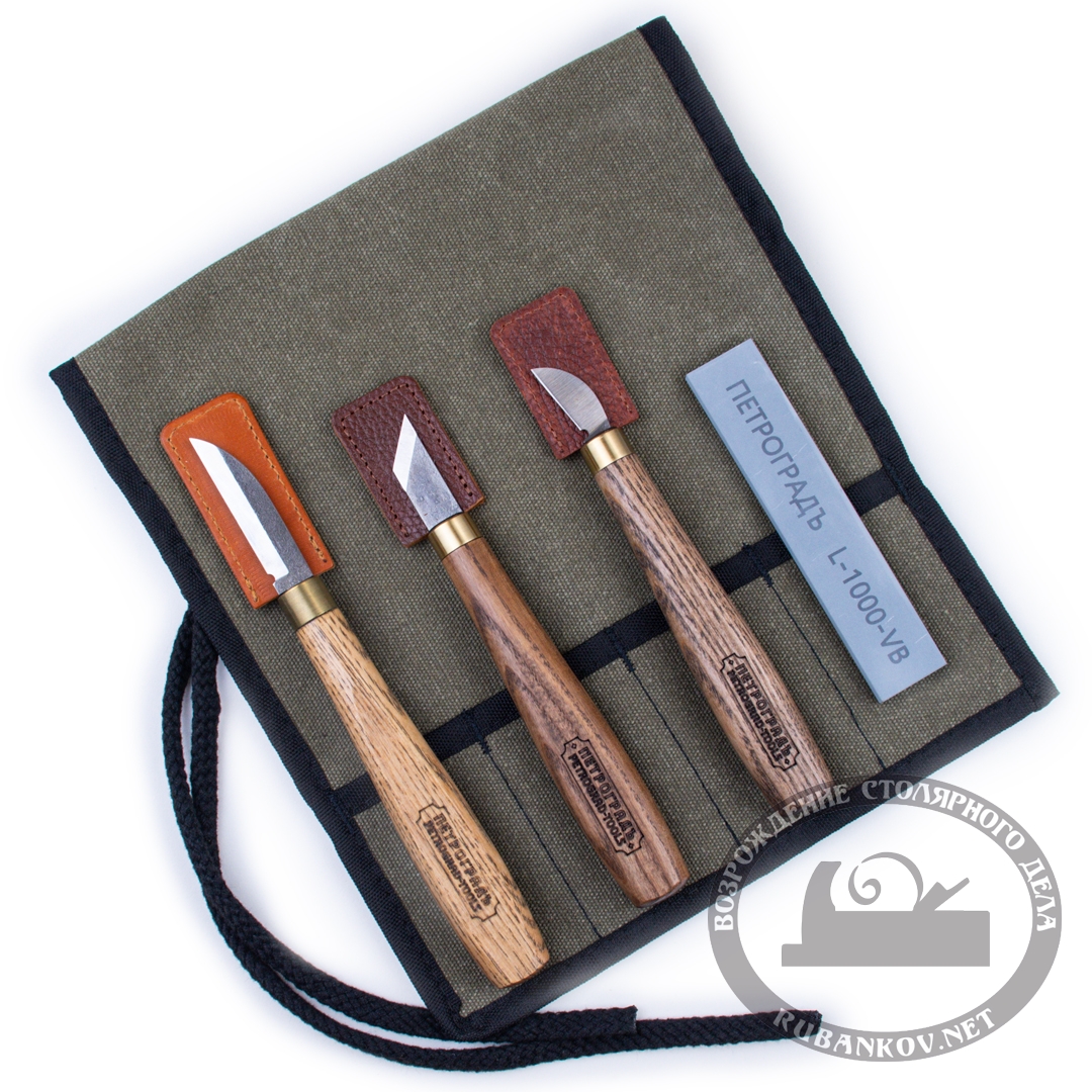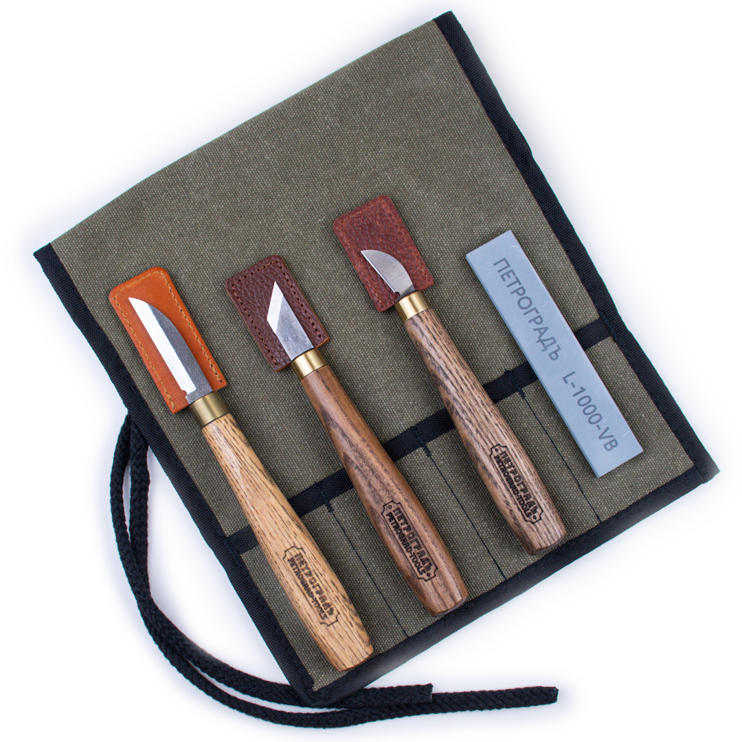 - набор заточной ПЕТРОГРАДЪ N9, для ножей для резьбы по дереву или набор заточной ПЕТРОГРАДЪ N8, для ножей для кожи и ремесленных ножей (рекомендован Т.В.Кручининым)