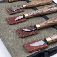 Каждый инструмент укомплектован кожаным колпачком для защиты режущей кромки.