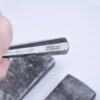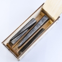 Клинья изготовлены из стали 65Г, режущая кромка закалена и отпущена до твердости 57-59HRC, ударная часть имеет более низкую твердость, чтобы не скалываться при ударах. Для установки клиньев рекомендуем использовать кувалды ПЕТРОГРАДЪ. Обязательно используйте защитные очки и перчатки при работе с металлическими инструментами.