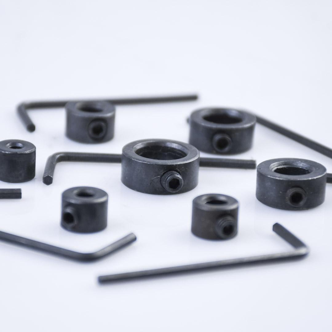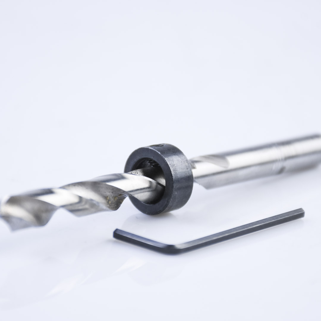 Ограничители исполняются в виде втулок, обычно изготавливаются из стали или алюминия и имеют специальное пазовое кольцо, которое фиксируется на свёрле и позволяет задать требуемую глубину сверления. Когда сверло достигает заданной глубины, оно замирает на ограничителе и не может продолжить движение дальше, предотвращая переполнение отверстия или провал сверла.