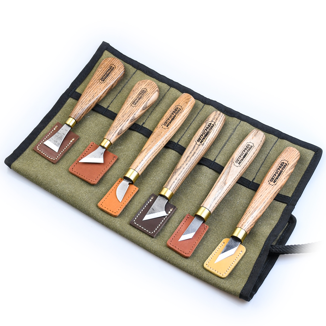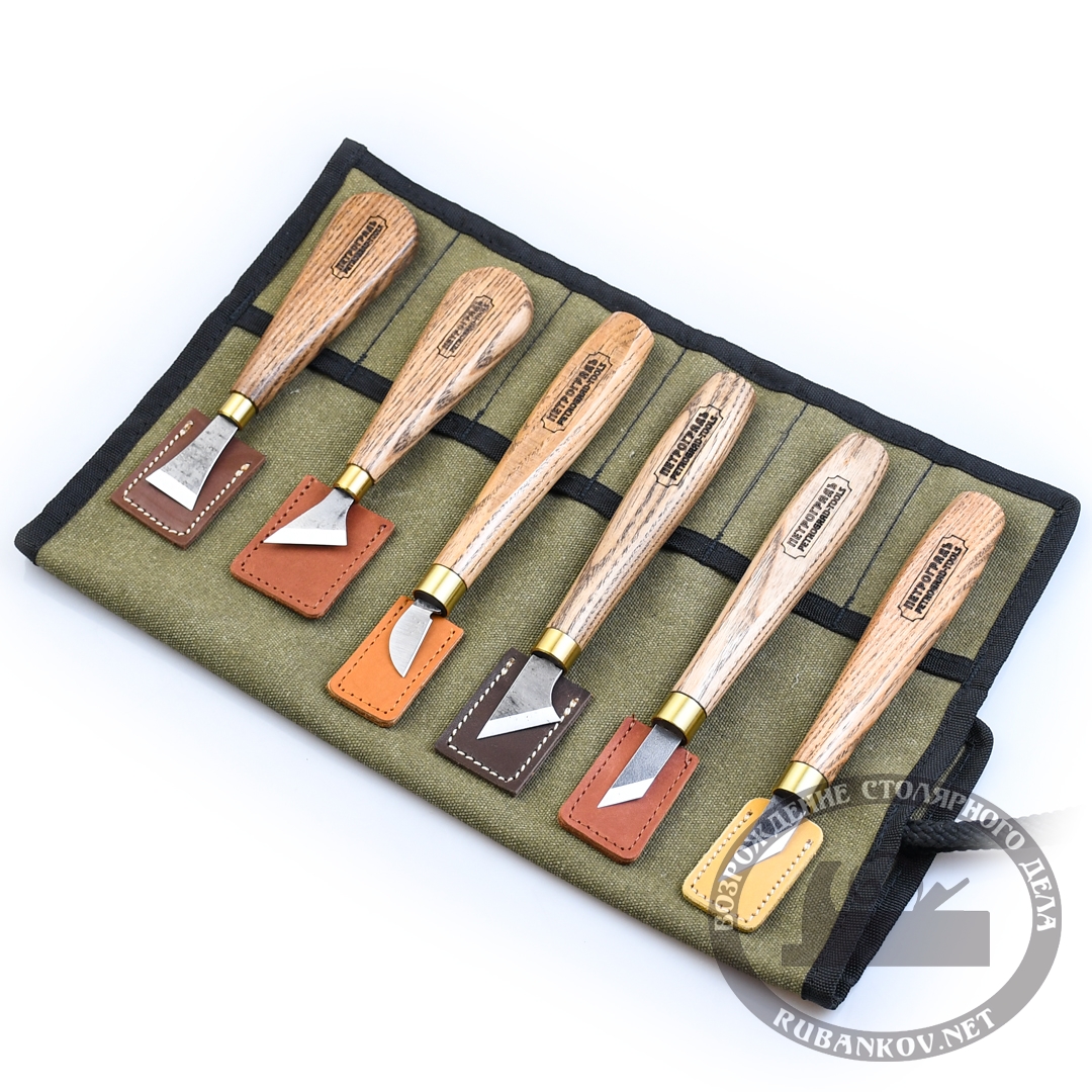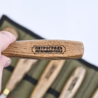 Набор для резьбы по дереву, ПЕТРОГРАДЪ, N10, для геометрической резьбы, 6 предметов, в скрутке это сбалансированный набор резцов для комфортного освоения геометрической резьбы по дереву. Резцы выполнены из стали 9ХФ, закалены до 61 HRC. Эргономичные рукояти выполнены из ясеня. Производство фабрика Петроградъ (Россия).
