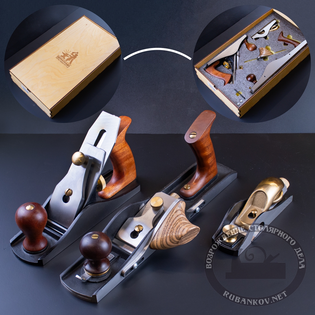 Набор рубанков GOLDRATIO: n4, n62 c бок.рукоятью, n507, в деревянном ящике. Состоит из 3 самых нужных рубанков, позволяющих осуществлять широкий спектр столярных работ, таких как выравнивание торцов, подчистка плечиков шипов, выравнивание пласти и кромок заготовок, снятие фасок и тд. Набор поставляется в фанерном ящике с ложементом. Рубанки изготовлены в Индии.