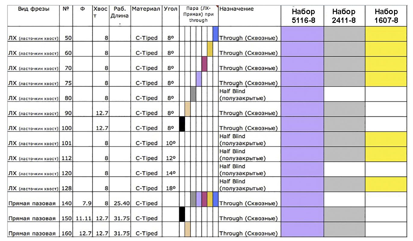 Наборы дополнительных фрез для выполнения соединения типа ЛХ на шипорезках Leigh - D4R Pro и всех моделях Super Jig