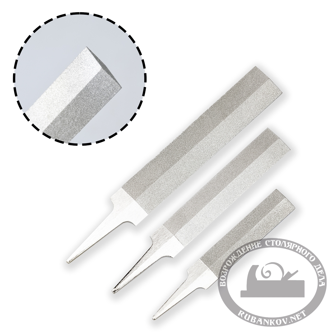 Напильник ДТП, ромбический, алмазный, Wataoka, без рукояти предназначен для заточки пил. За счет правильно спроектированных зубчиков напильника, обеспечивается хороший сход стружки и можно получить чистую режущую поверхность. Производство Wataoka (Япония).