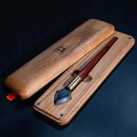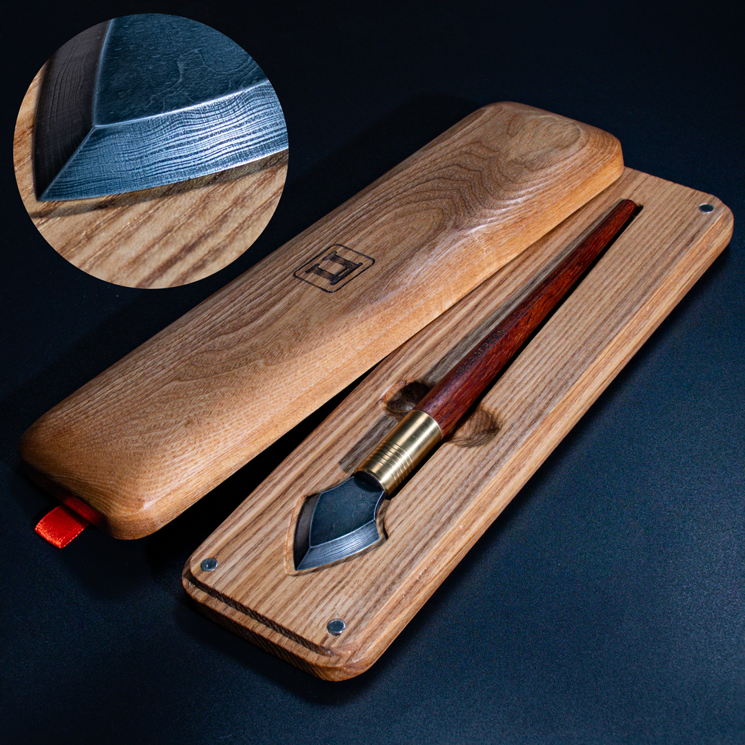 - Нож поставляется в изящном футляре из ясеня с фиксацией крышки на магнитах. Отделка футляра паркетное масло в 3 слоя. Для открытия футляра нужно, удерживая его одной рукой, потянуть второй рукой вверх за красную петличку.