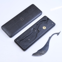 Общая длина изделия составляет 185 мм, при этом рабочая часть имеет длину 47 мм. Нож поставляется в деревянной шкатулке.