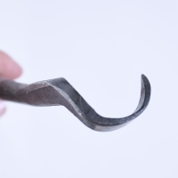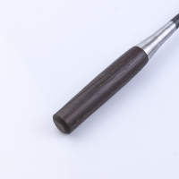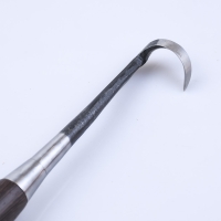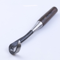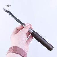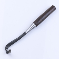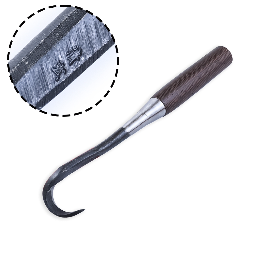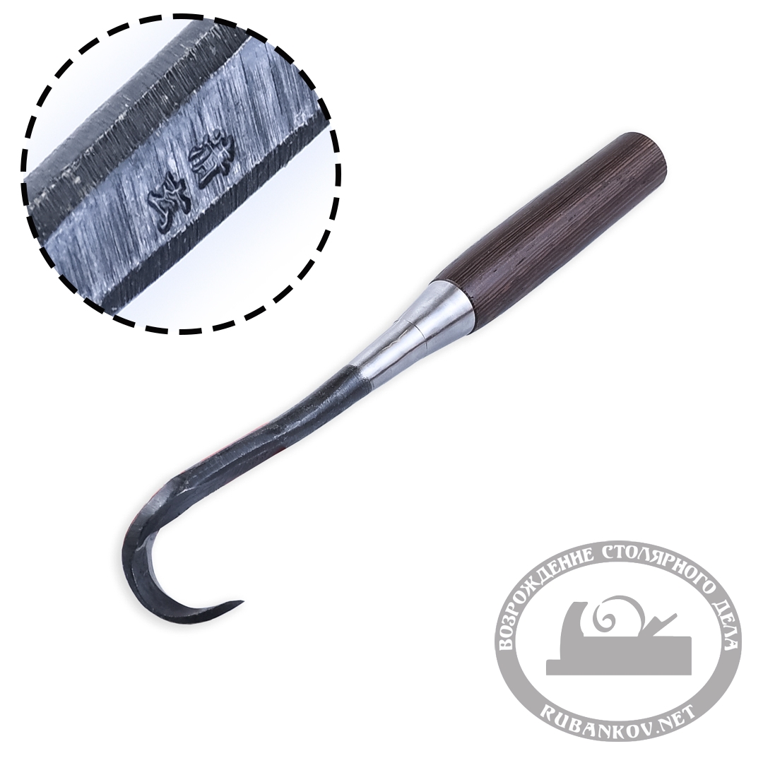 Нож резчицкий Hanen Kama, 240мм. В русской терминологии этот инструмент называется нож-скобелка (от слова скоблить). Предназначен для обработки внутренних поверхностей высокой деревянной посуды, сидений стульев, вырезания шаров, скругленных и полых форм. На державке клеймо японского мастера. Рукоять выполнена японского красного дуба. Радиус кривизны лезвия около 16 мм. Производство Япония.