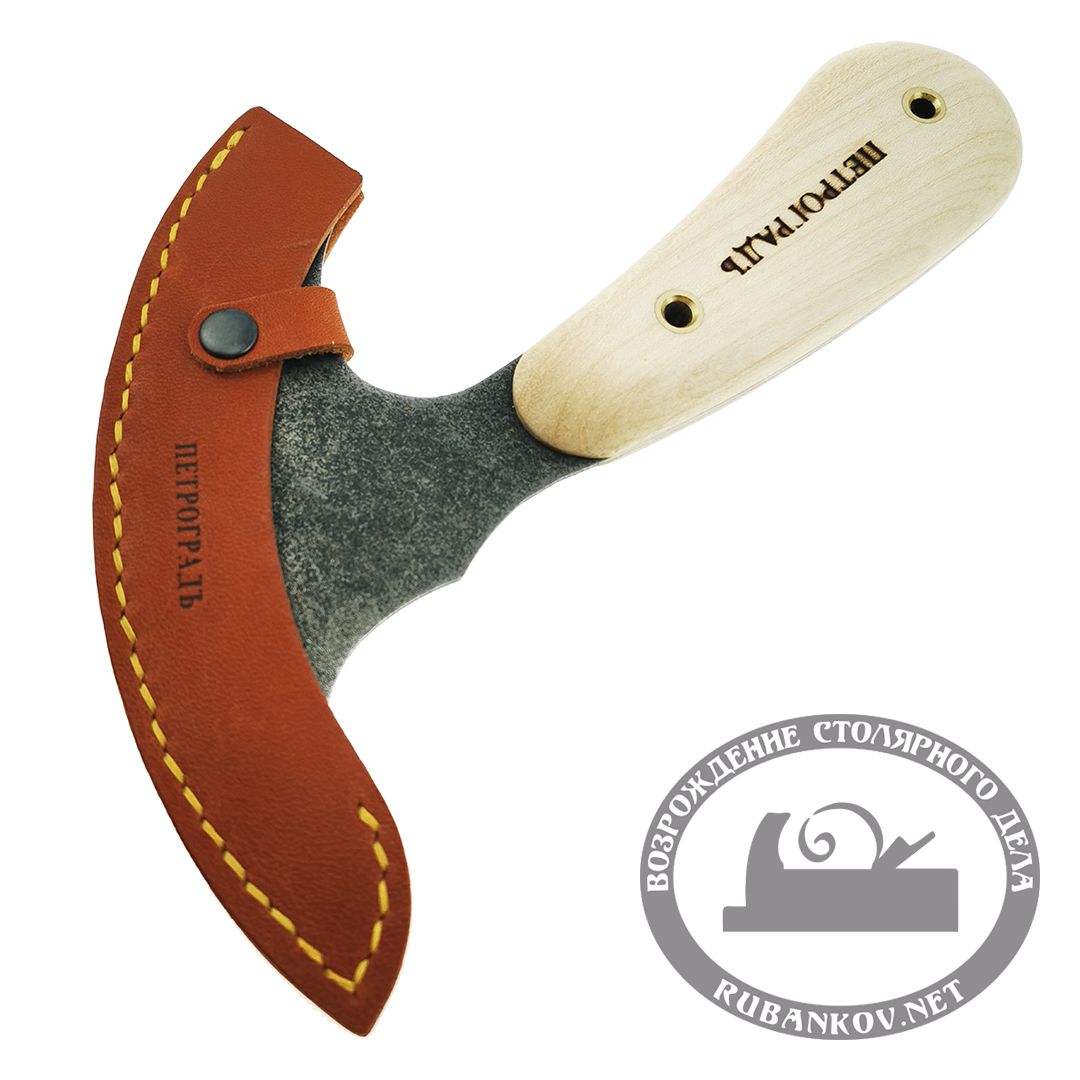 Нож раскроечный для кожи модель 3 (топорик по коже), используется для раскройки, торцевания и шерфования кожи. Может быть использован для других материалов схожей плотности и твердости. Производство фабрика Петроградъ (Россия)