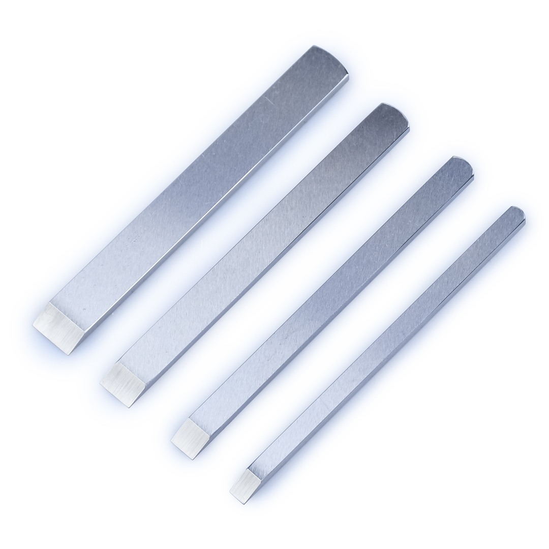 Ножи для шпунтубеля N43. Выполнены из стали 9ХС, закалены до 60-61 HRc. Угол заточки составляет 25 градусов. Предназначены для установки в рубанок шпунтубель N43 по стандарту Стенли. Производство фабрика Петроградъ (Россия).