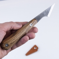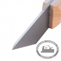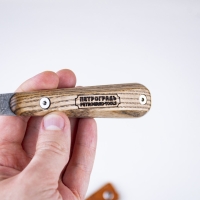 В 2023 году была глубоко переработана форма рукояти ножа. Новое исполнение рукояти сделало нож ощутимо более удобным в работе и привлекательным внешне. Удобная рукоять со скосами из твердых пород древесины, покрыта маслом. Нож косяк заточен и готов к работе.