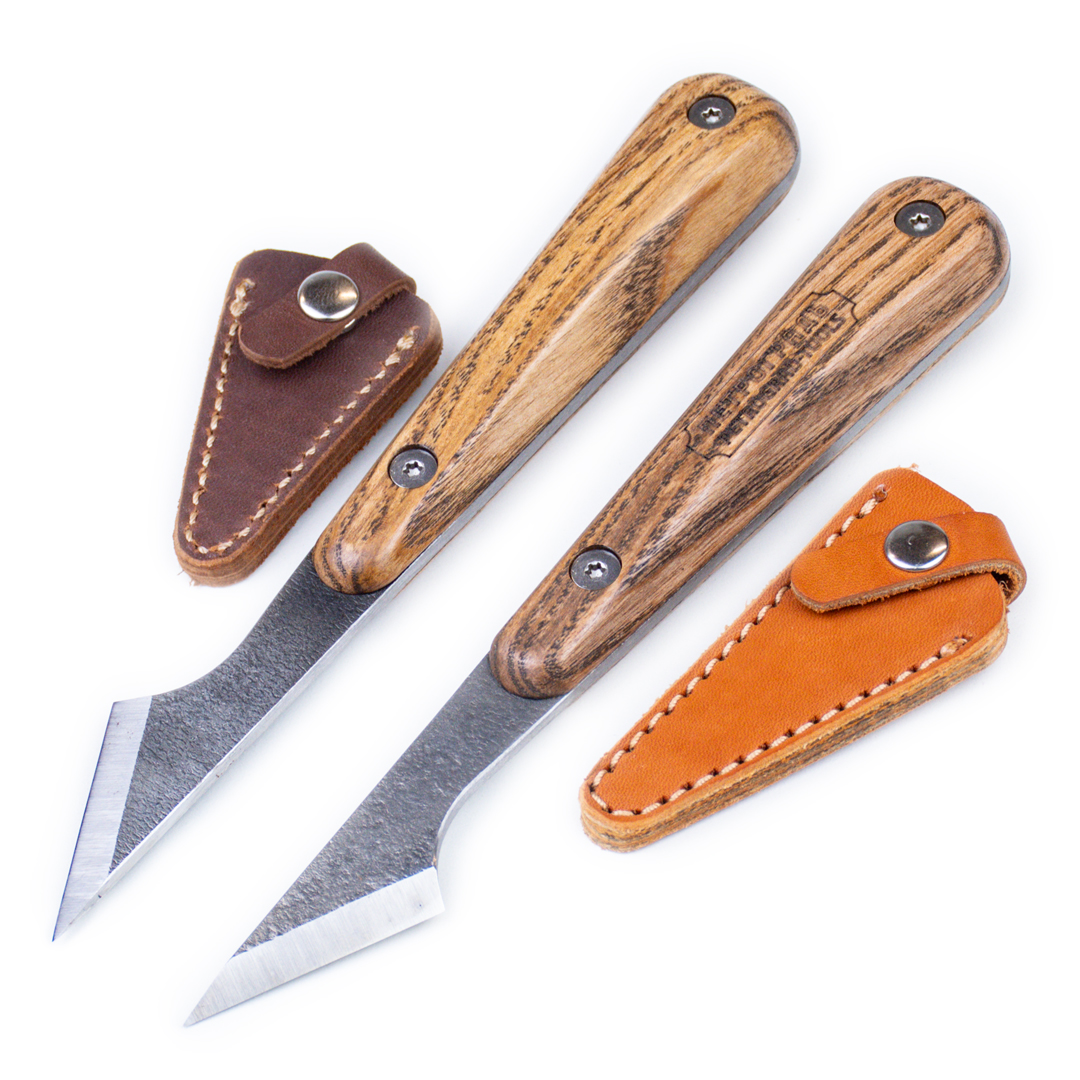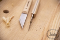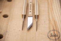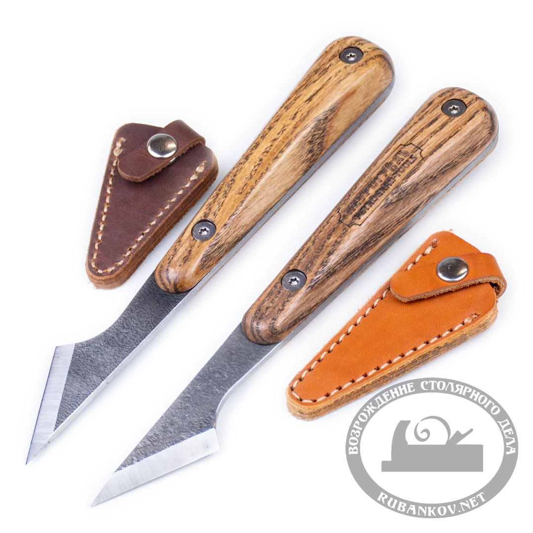 Ножи-косяки разного размера с углом скоса 30 градусов. Нож косяк - один из наиболее универсальных резчицких инструментов, применяется при разметке, грубом съеме материала, при роспуске шпона и выполнении резчицких элементов декора. Производство фабрика Петроградъ (Россия).