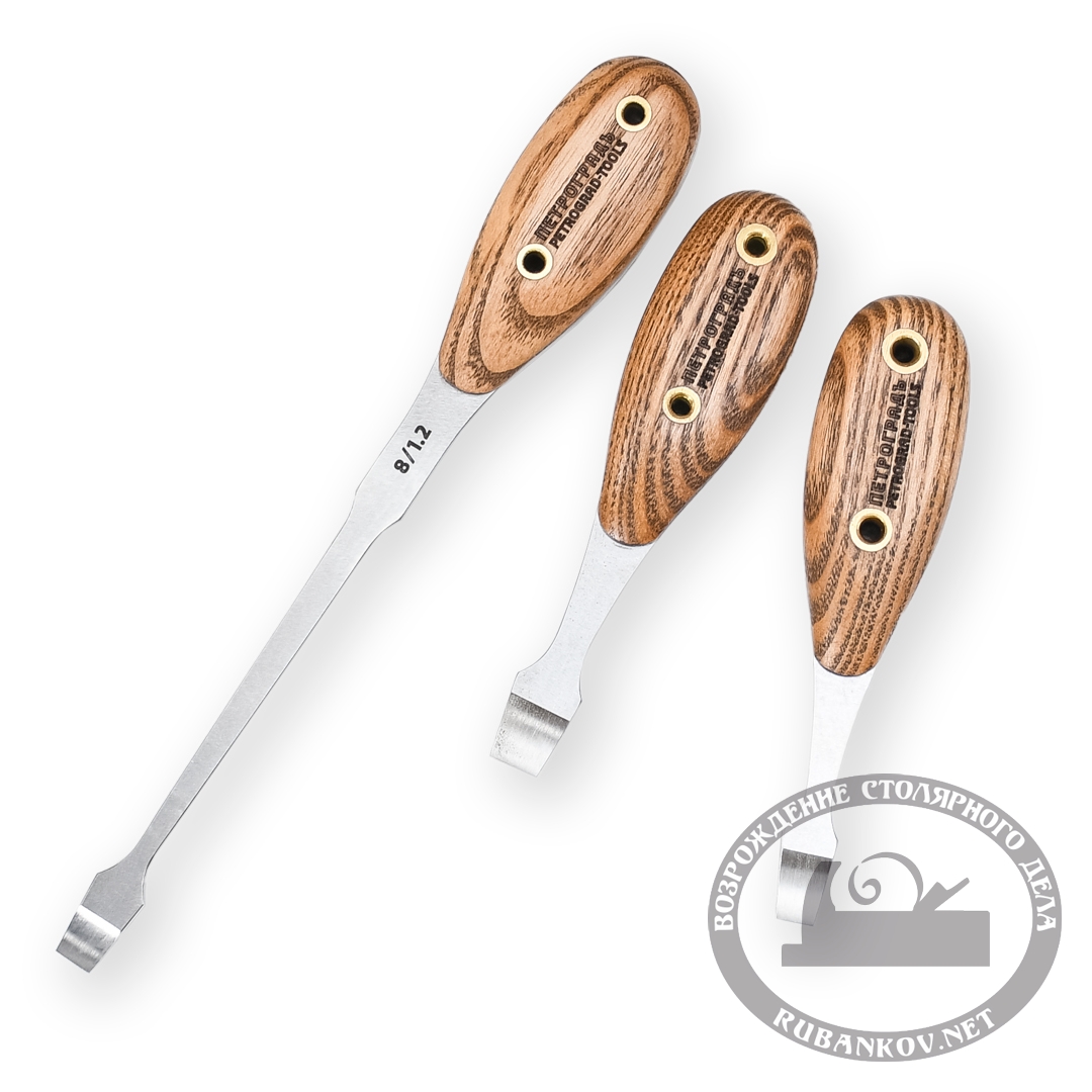 Отвёртки ПЕТРОГРАДЪ представлены четырьмя моделями. Отвертки могут применяться как для настройки ручного инструмента (рубанков, пил), так и в качестве оружейных.