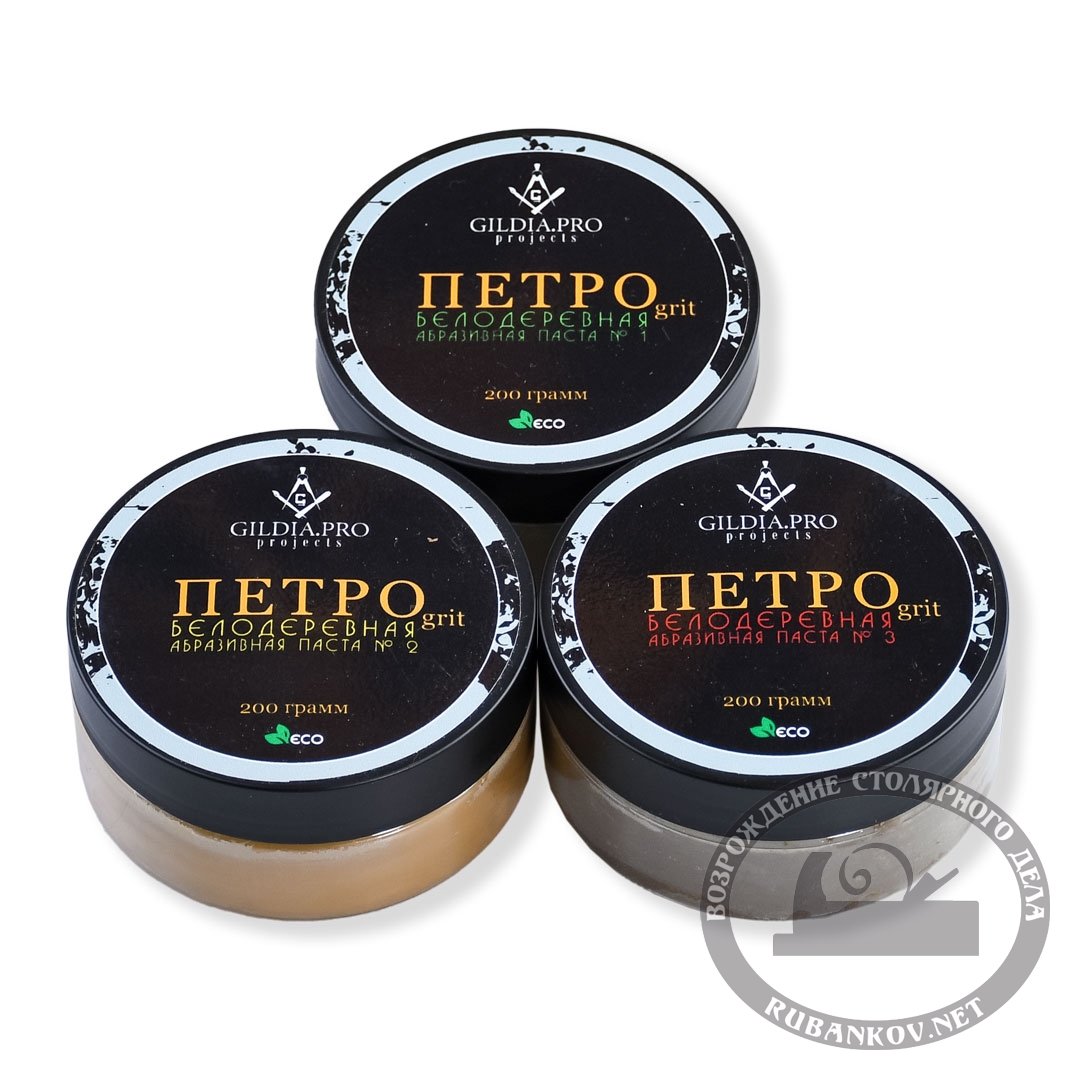 - Это и инфузорная земля или кизельгур или диатомит; и терполи (триполи) или трепел; и карбонат кальция или мел; и прочие материалы.Шлифование поверхности пастой, особенно пористых пород сопровождается одновременным заполнением пор древесины, что дает на финеше потрясающие гладкую поверхность с полностью или частично закрытыми порами. Подобный результат зависит от интенсивности работы, количества применяемой пасты и желания.Исторически пасты определялись нумерацией и делились по тонкости обработки определенных пород древесины. «Тончайшая обработка» предполагалась для твердых пород; следующая для средних и т.д.На данный момент представлен ПЕТРОGrit.:№1. Абразивная паста для тонкой обработки (финиш). Рекомендована для твердых пород древесины. Например, черное дерево, палисандр, бакаут, самшит и пр.№2. Абразивная паста для средней обработки. Рекомендована для пород древесины средней твердости. Например, дуб, орех, пальма, клен, береза и пр.№3. Абразивная паста для грубой обработки.