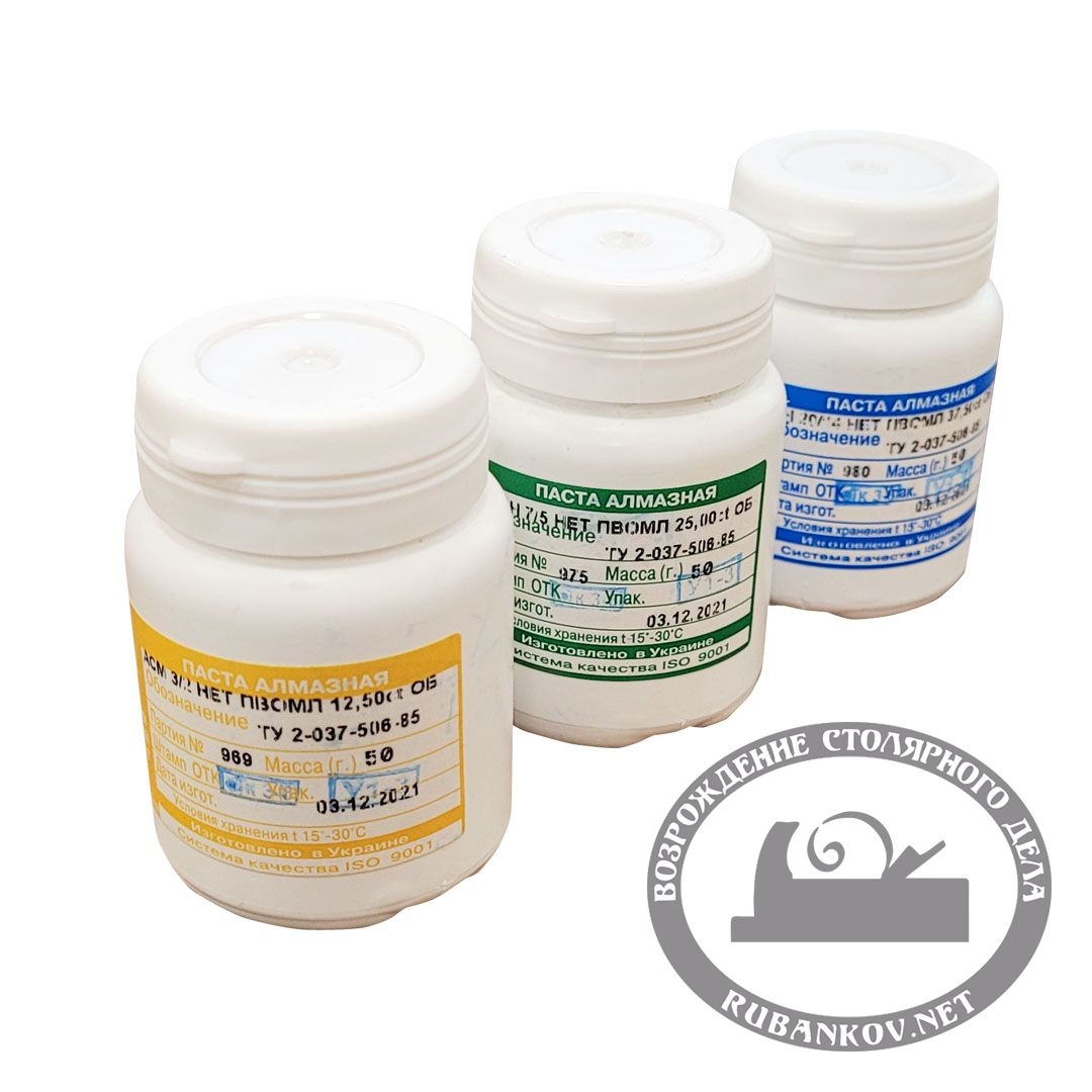Пасты полировальные алмазные, 50г. Алмазные пасты применяются для завершения обработки изделия, шлифовки или полировки. В этом помогают пасты, содержащие микропорошок на связующей основе: олеиновой кислоты, стеарина, воска, бензина, керосина, касторового масла и других веществ.