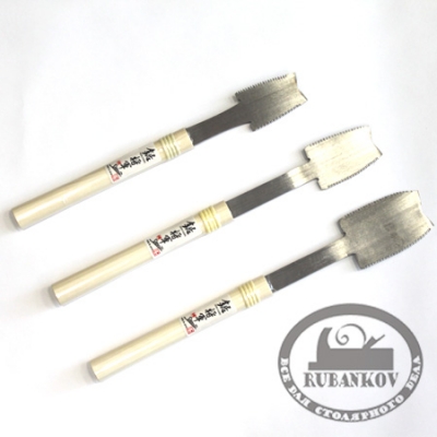 Пила используется для резки пазов, канавок в середине панели. Конструкция пилы позволяет легко запиливаться и работать в ограниченных местах. Короткое изогнутое лезвие (толщина 0.6 мм). Имеет зубья с двух сторон: с одной трапецеевидные (шаг 1.6 мм) для лучшего реза поперек волокон, с другой - треугольные (шаг 3.3 мм) для лучшего реза вдоль волокон. Зубья направлены к рукояти, что позволяет легко получать ровный рез не требующей дополнительной обработки. Деревянная рукоять.