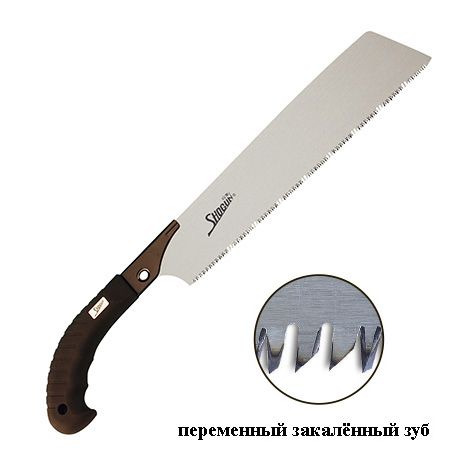 Пила Shogun Universal Cut Saw имеет сменное полотно с закаленным переменным зубом. Пистолетная рукоять выполнена из обрезиненного алюминия. Длина полотна - 265мм, ширина полотна - 60мм, толщина - 0.6мм, общая - 425мм.Толщина пропила 0.9мм Трапециевидный зуб (шаг 1.75мм). Благодаря переменному зубу отлично пилит вдоль волокон, поперек и по диагонали. Зубья направлены к рукояти, что позволяет легко запиливаться и получать ровный рез не требующий дополнительной обработки. Производство Miki Tool (Япония).