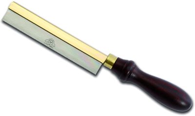 Ювелирная пила Pax имеет очень тонкое полотно (0.25 мм) толщина пропила 0.30 - 0.45 мм и предназначена для работы высокой точности, н-р пиления небольших кусочков мягких металлов. При этом зубья не имеют разводки. Полотна выполнены из специальной легированной стали. Зубья заточены вручную. На полотнах выгравирован логотип марки. Для стабилизации работы и распределения масс на полотно насаживается отполированный латунный обушок. Удобная рукоять из розового дерева с латунным обжимным кольцом. Эти пилы отличаются не только прекрасным качеством пиления, но и великолепным внешним видом. Длина полотна 152 мм, шаг зубьев - 20 tpi (20 шт на дюйм). Глубина пиления 19 мм. Для хранения и транспортировки полотна покрыты тонким слоем лака, который можно удалить с помощью уайт-спирита. Пилы могут быть перезаточены напильником. После работы рекомендуется протирать полотно маслом Камелия. Производство -Thomas Flinn & Co (Великобритания).