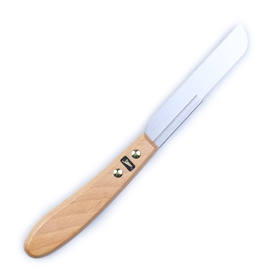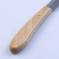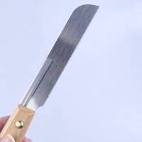Прецизионная пила Shogun предназначена для высокоточных экстра мелких работ по дереву. Зубья направлены к рукояти, что позволяет легко запилить и получать ровный рез не требующей дополнительной обработки. Имеют небольшой обушок длиной в половину лезвия. Шаг зубьев - 28 зубьев на дюйм. Высота пропила в зоне обушка - 14мм. Длина полотна: 120 мм. Толщина полотна 0.3 мм, толщина пропила 0.45 - 0.5 мм небольшой развод зуба. Полотно не сменное, установлено в деревянную ручку из бука с помощью заклепок. Производство - Shogun (Япония.)