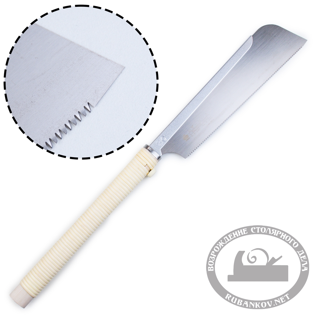 Одной из ключевых особенностей этой японской пилы является тонкое сменное полотно с импульсной закалкой зубчиков. Шаг зубьев 17 tpi. Предназначение – поперечное пиление твердых пород древесины, МДФ, ОСБ. Толщина полотна составляет всего лишь 0,3 мм.