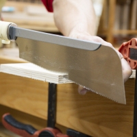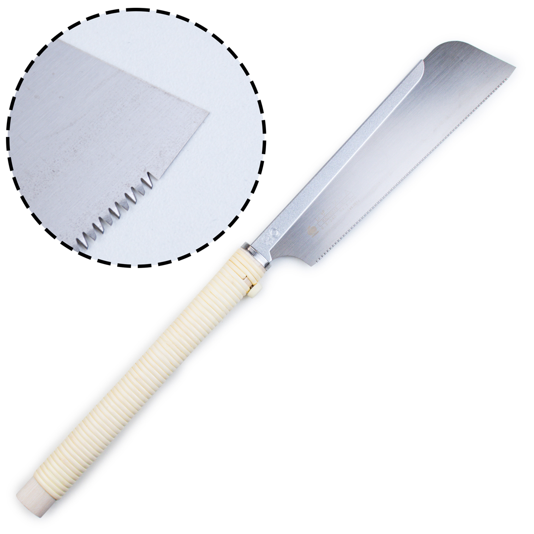 Gyokucho Dozuki A 240 мм будет очень полезна для торцевания или подрезки, отлично работает по экзотически твердым лиственным породам, а также по клееной древесине и древесностружечным плитам. Устойчивый к износу зуб, даже при пилении (экзотических пород), клеёных соединений и синтетических смол долго остается острым.