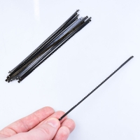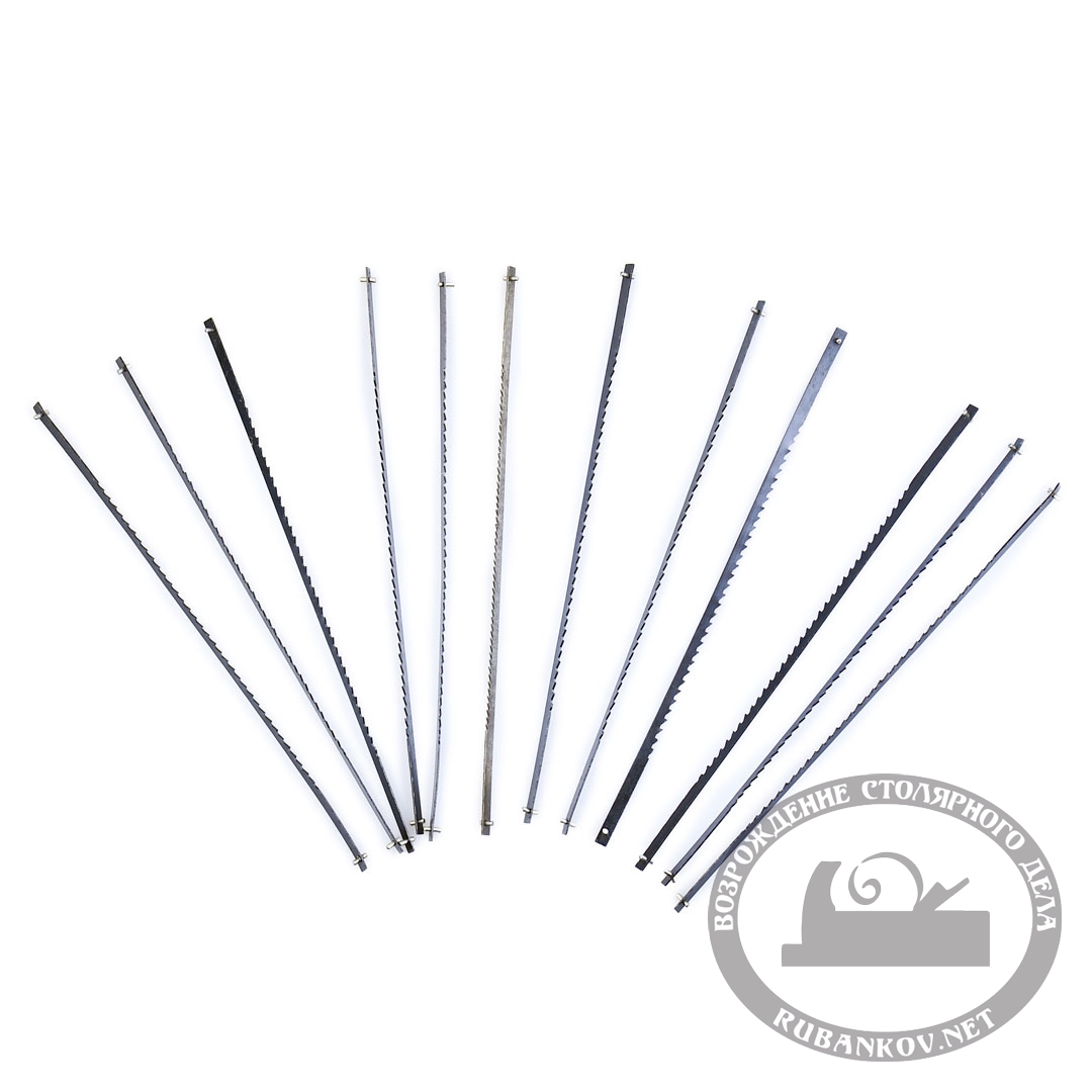 Пилки для ручного лобзика по дереву, GOLDRATIO, 12штук в комплекте. Предназначены для установки в штифтовой лобзик. Длина пилок составляет 130 мм. Сделано в Индии.