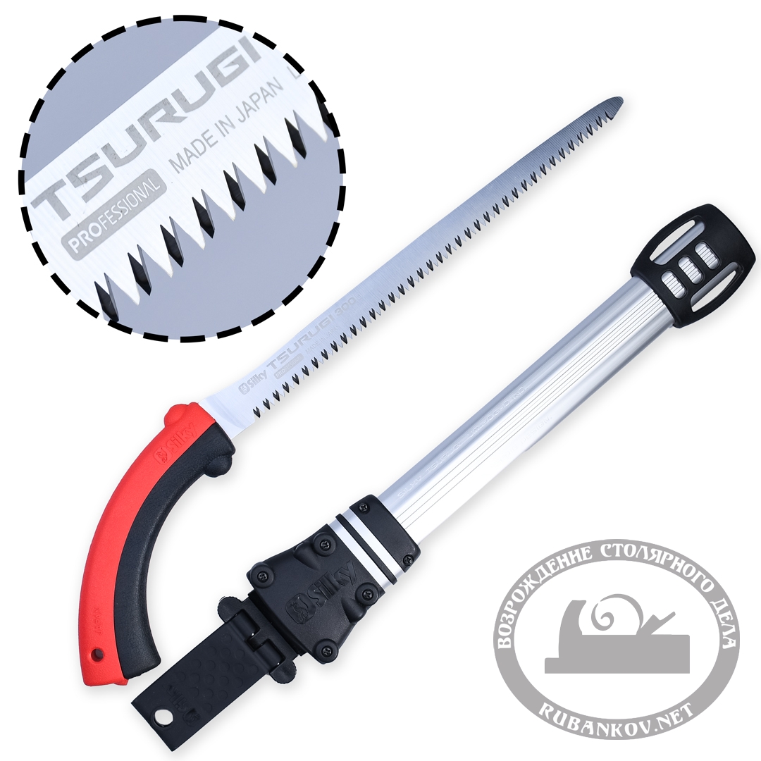Пилы Silky TSURUGI самая легкая и сбалансированная пила для садоводов и путешественников. Двухкомпонентная рукоять фиксируется на полотне без винтов, зажимов и других крепежных элементов. Узкое и тонкое полотно обладает закаленными на кончиках зубьями и имеет хромированное покрытие. Предназначено как для мягкой так и для твердой древесины, а также для работы в стесненных условиях. Комплектуется алюминиевыми ножнами, с 8-ю защитными роликами предотвращающие повреждение зубьев. Ножны имеют возможность крепления на ремне и на голени. Производство Silky (Япония).