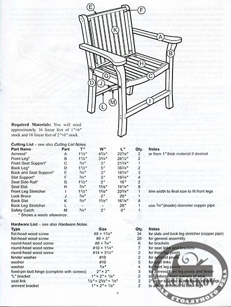 Полно размерный (1:1) чертеж кресла размерами 610х787х914мм. Единицы измерения чертежа - inch (дюйм). Элегантное, легко складывающееся, комфортное кресло. Легко складывается, что удобно при хранении и транспортировке. Выполняется из материалов стандартного размера. В комплекте: чертеж, список необходимых материалов, список используемых инструментов и инструкция по сборке. На английском языке. Разработан - Lee Valley (Канада).