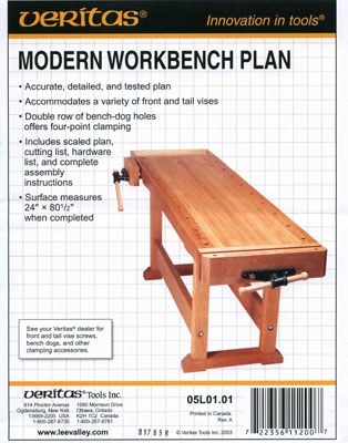 План и инструкция по изготовлению современного деревянного столярного верстака с двумя тисками - фронтальными и боковыми и боковым лотком для инструментов. Точное подробное описание с большим чертежом со всеми узлами. Размер верстака 610 х 2045 мм. Разработан фирмой Veritas (Канада).
