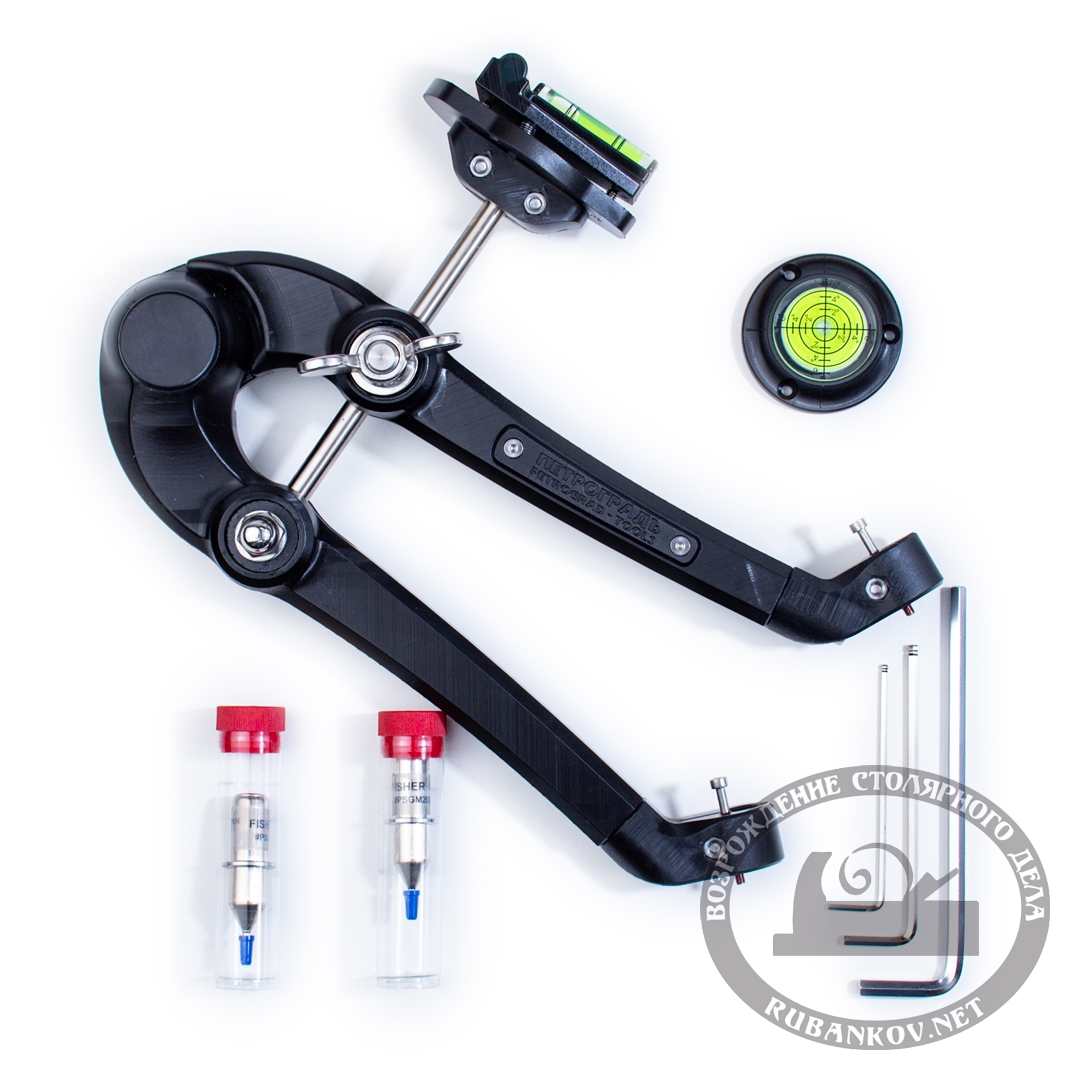 Плотницкая черта-скрайбер ПЕТРОГРАДЪ, модель 2, с карандашами. Подходит для всех видов рубки. У черты эргономичная форма, ей очень удобно пользоваться при разметке - идеально лежит в руке. В холодное время года черта не холодит руку благодаря материалу из которого она выполнена. Поворотные цанги можно вращать вокруг оси ног черты для удобства работы, при этом кончик пишущего элемента остается в одной точке. Это позволяет с удобством подобраться к месту разметки на бревне без потери точности. Симметричный раствор ног осуществляется с помощью полированной штанги диаметром 8 мм из калиброванной стали круглого сечения. Уровневая площадка закреплена на штанге консольно.Производство – фабрика Петроградъ (Россия).