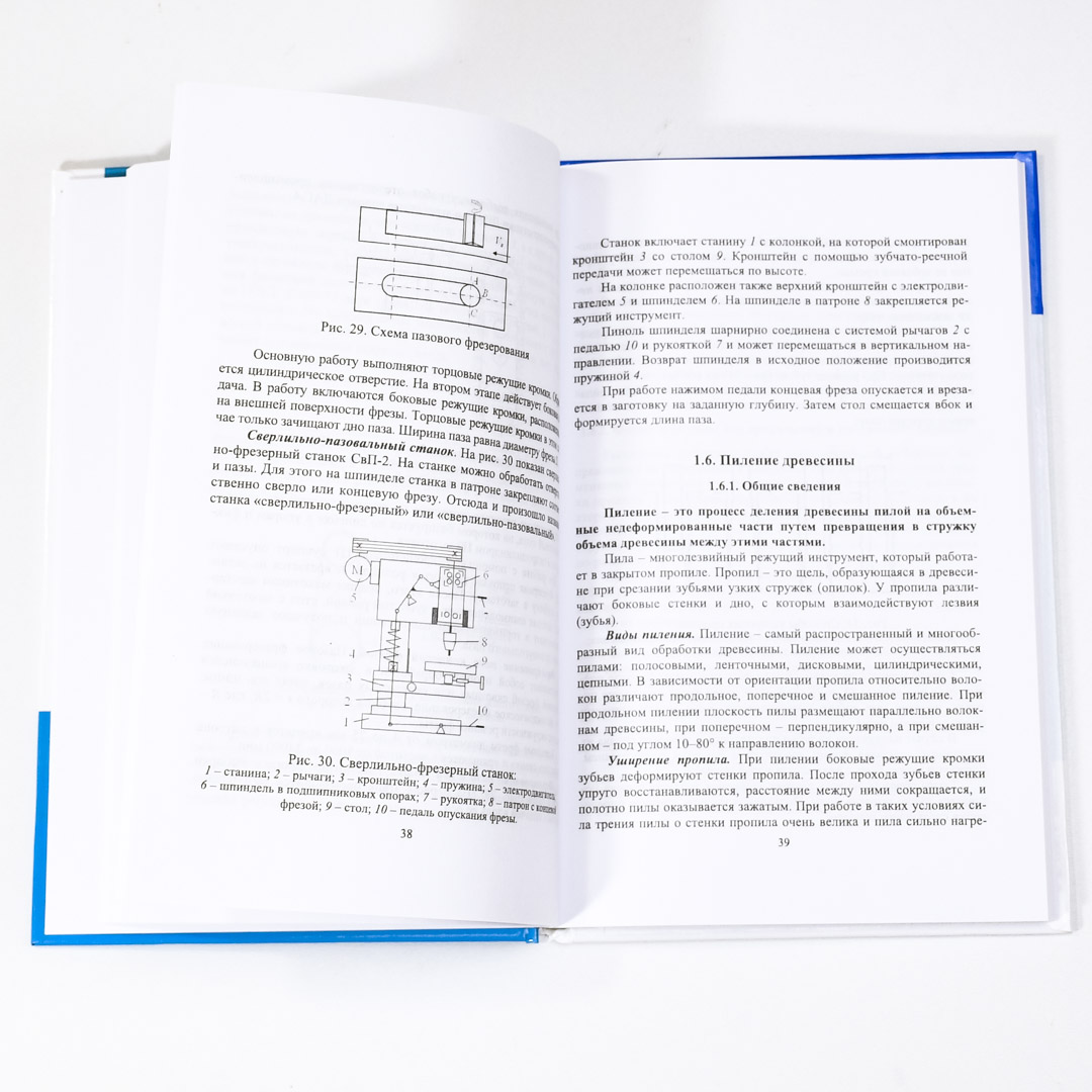 Книга состоит из пяти глав. В первой главе учебного пособия даны общие сведения о резании древесины, дереворежущих инструментах, шероховатости деревянных обработанных поверхностей. Рассмотрены виды резания: теска топором, выборка пазов, гребней, четвертей, долбление, пиление поперечное и продольное, строгание, фрезерование, сверление.