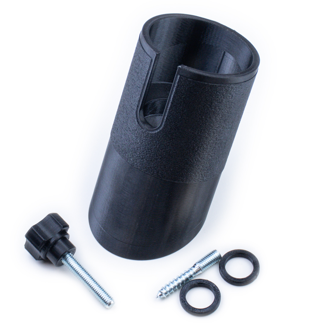 Держатель можно закрепить на боковой стенке верстака, на верстачной доске и даже на стене. В комплекте предусмотрен винт, который позволяет закрепить сквозь отверстие ф19мм и толщиной 36-42мм. Если толщина вашего верстака меньше 36мм, то в комплекте предусмотрены дистанционные шайбы (2шт) каждая шайба позволяет уменьшить данный размер на 4мм. Таким образом, держатель может быть закреплен на верстаке или панели толщиной от 28 мм до 42 мм.