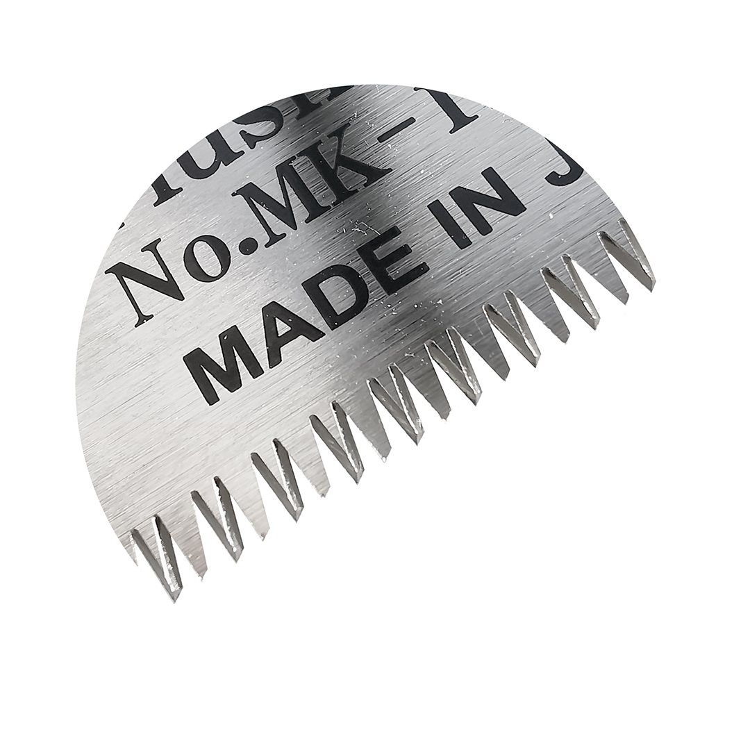 Сменное полотно для складной безобушковой пилы Shogun Folding Pocket Saw. Лезвие без разводки, благодаря конусной форме, позволяет свести к минимуму трение при пилении. Также можно использовать как пробочную пилу. Зубья направлены к рукояти, что позволяет легко запиливаться и получать рез не требующий дополнительной обработки. Зубья имеют закалку для значительного увеличения срока службы, лезвие хромированное. Лезвие устанавливается в 2 рабочих положениях. Длина лезвия 120 мм, толщина 0.45 мм. Шаг 26 зубьев на 30 мм. Ширина полотна 27мм. Производство Miki Tool (Япония)