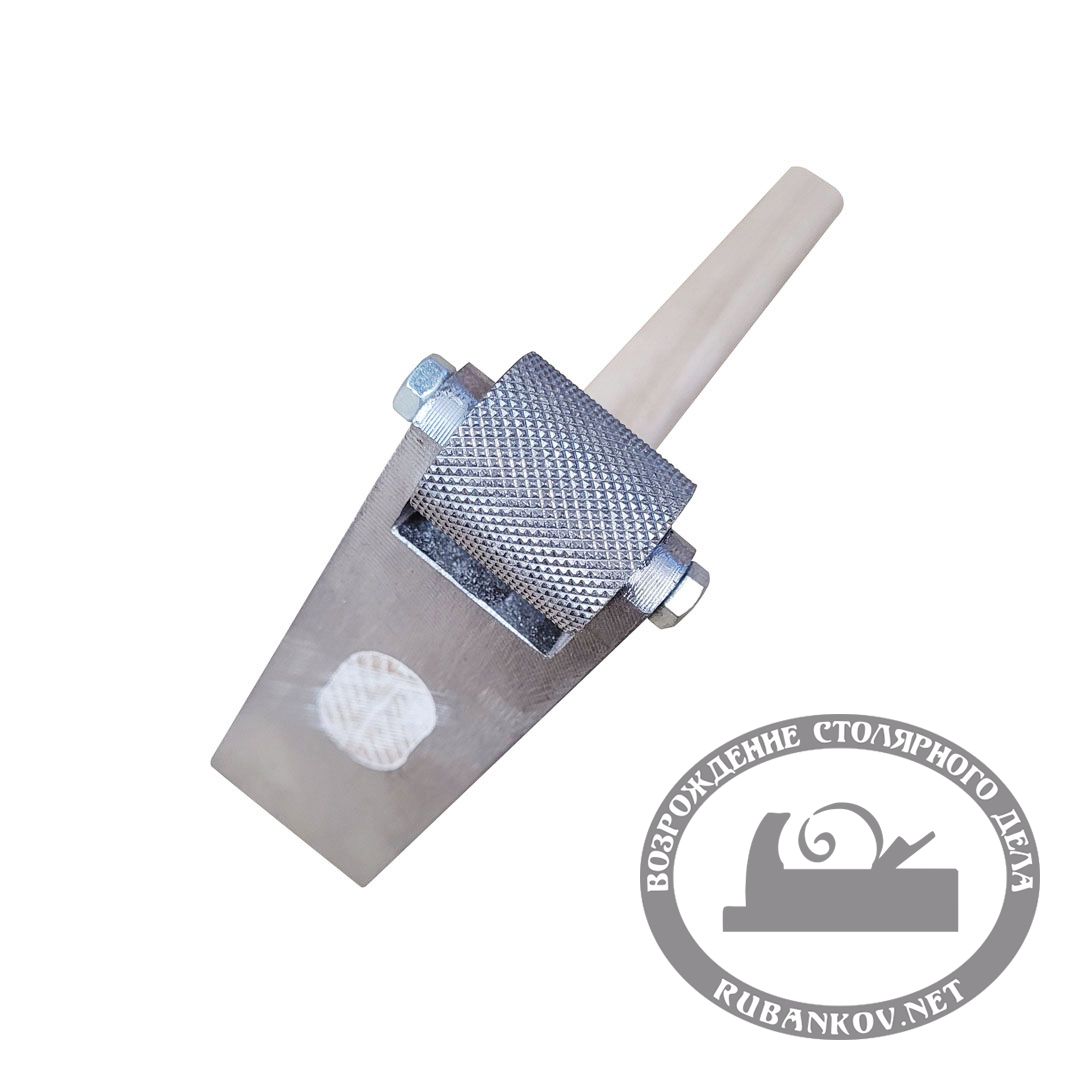 Прикатка для маркетри. Молоток с роликом для фанерования. Молоток имеет две стороны: прикаткой ролик и полукруглый боек. Материал молотка - алюминиевый сплав. Рукоять выполненная твердых пород древесины. Предназначен для прикатки шпона, гумирки при фанеровании. Благодаря жесткой конструкции он равномерно раскатывает клей не повреждая изделие.