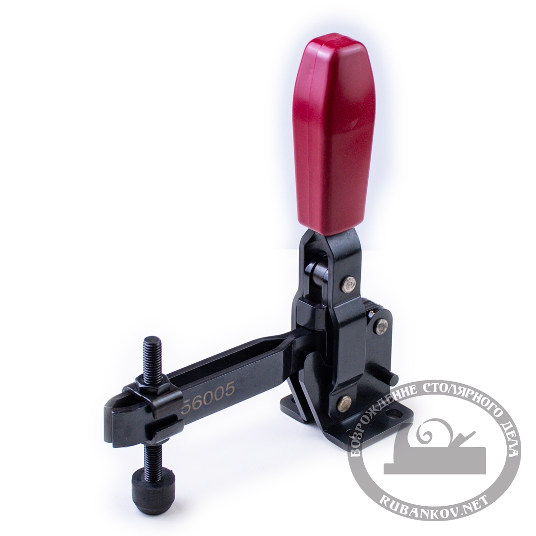 Прижим Piher Toggle Clamp, вертикальный. Вертикальное зажимное устройство с открытым зажимным рычагом и горизонтальной опорой. Выполнена из оцинкованной стали. Предохранительный зажим с защитой для пальцев. Производство - AMF(Германия) по заказу компании Piher (Испания)