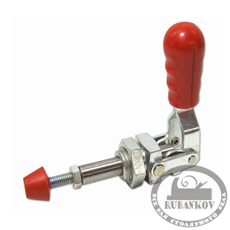 Прижимное устройство с открытым зажимным рычагом. Сила прижима 450-1300Н. Длина - 68-104мм, ширина - 27 - 32.6мм, высота - 35-96мм, масса - 50 - 280г. Выполнена из оцинкованной стали. Предохранительный зажим с защитой для пальцев. Модели М5, М6, М8, и М10 не комплектуются подставкой. Модель М4 поставляется с округлой пяткой и несъемной подставкой.