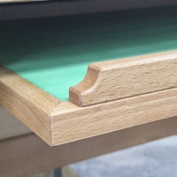 Столешница выполнена из прочной берёзовой фанеры толщиной 18мм, обкладка по периметру столешницы - из бука. Для удобства работы к столешнице приклеена накладка из полиэтилена ПВД. Размер столешницы - 1000мм х 600мм. Высота стола 700мм. Стол предназначен для работы сидя.