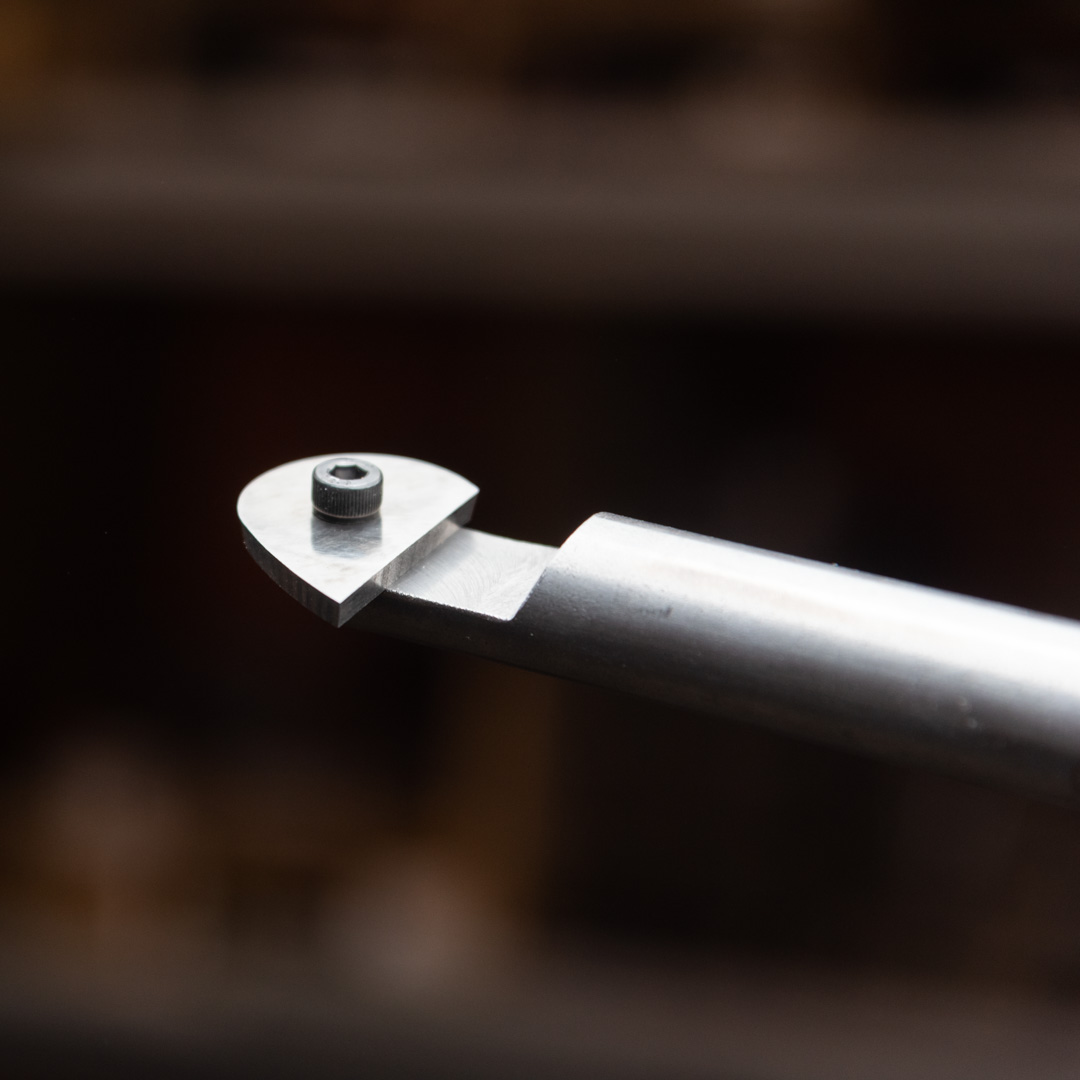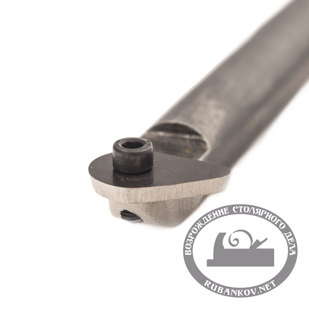 Расточной резец по дереву со сменными пластинами, используется преимущественно для расточки внутренних полостей изделия. Помимо этого работает как обычная токарная цикля по дереву. Благодаря всевозможному ассортименту сменных пластин, является поистине универсальным комбайном по финишной обработке токарных ваз, чаш, тарелок и другой посуды из дерева изготавливаемой на токарном станке по дереву. По типу резания данный резец относится к токарным циклям по дереву, и соответственно сменные пластины тоже являются циклями. Производство фабрика Петроградъ (Россия)