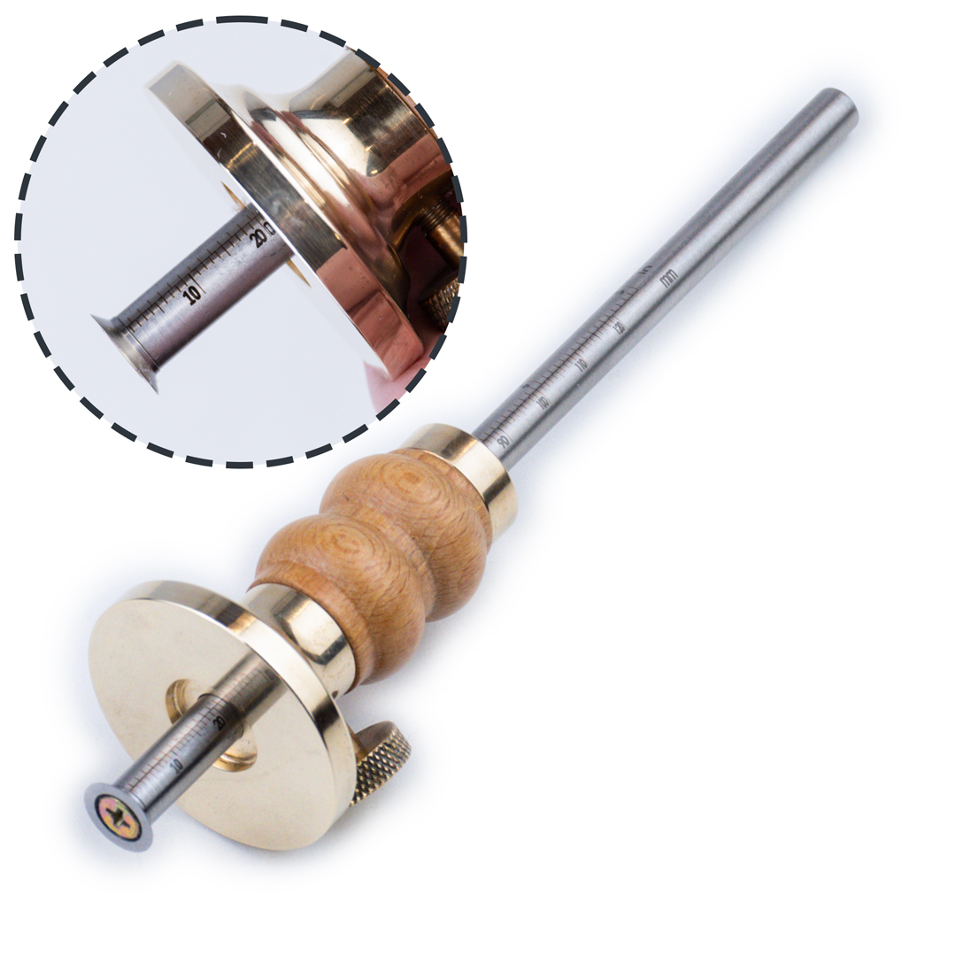 Рейсмус для разметки, GOLDRATIO, 175мм. Корпус рейсмуса выполнен из латуни и бука. Стержень рейсмуса выполнен из стали. На рейсмусе нанесена разметка в мм и дюймах. Рейсмус предназначен для разметки линии, параллельной базовой плоскости. Производство – GOLDRATIO (Индия).