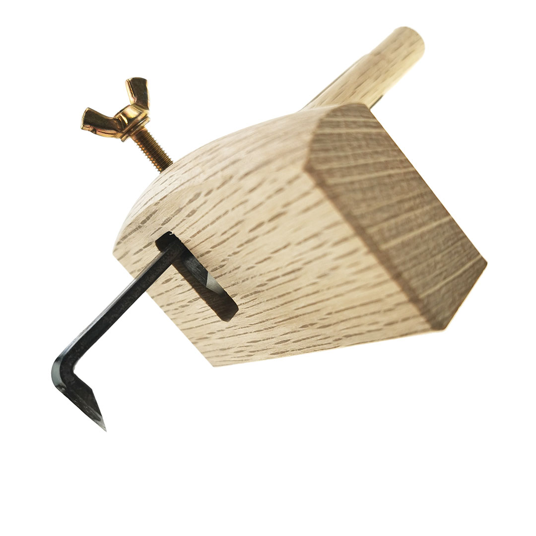 Рейсмус японский, деревянный, с двумя ножами, 80 мм. Рабочий диапазон реза 0 - 80 мм. Два ножа. Форма ножа позволяет размечать тонкие доски и тонкую фанеру, для последующего отлома. Колодка выполнена из белого дуба. Лезвия толщиной 3 мм из двухслойной стали с режущим слоем твердостью 62-64 HRc и основным слоем из более мягкой стали 50-55 HRc. Сталь ножа - высокопрочная оружейная сталь Japanese Sword Still. Ножи имеют заводскую заточку, но перед началом работы требуется доводка. Традиционно для японского инструмента рез производится на себя. Длина 105 мм, ширина - 93 мм, высота колодки - 53 мм. Ширина ножа - 11 мм. Масса 340 г.