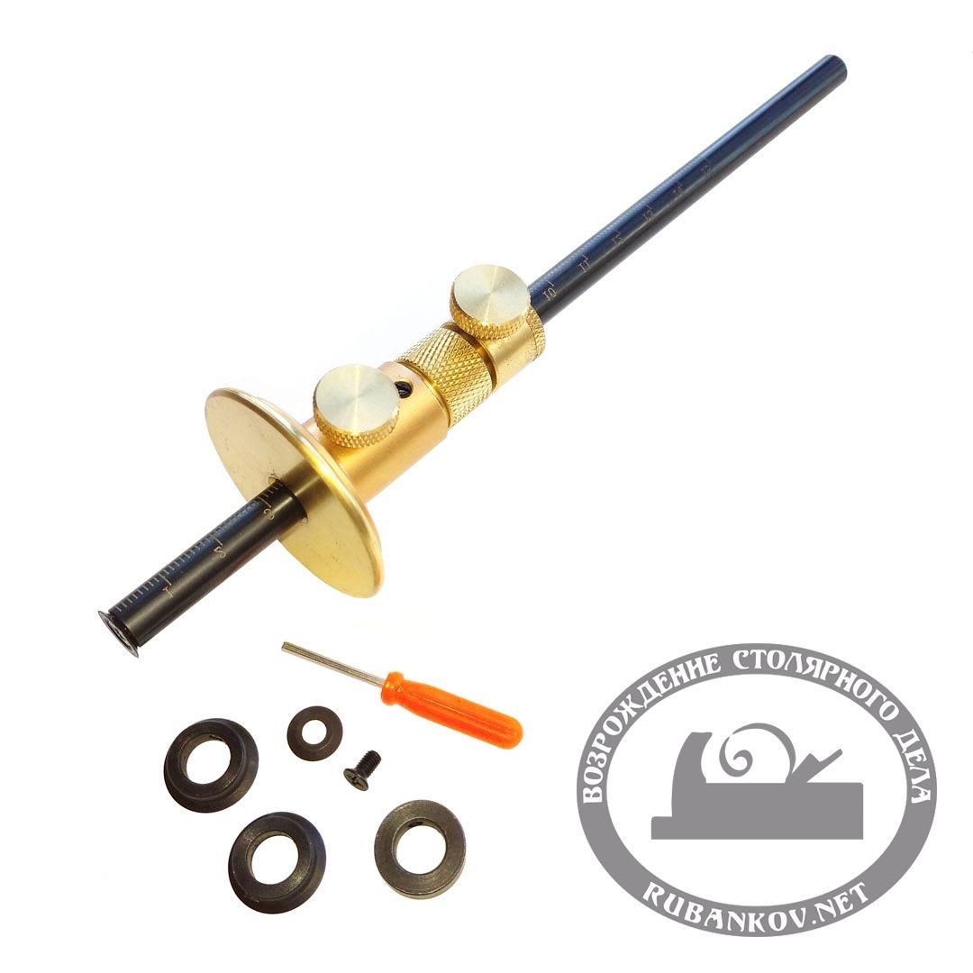 Рейсмус разметочный c микроподстр. 150 мм, с доп. ножами и огр. глубы, со шкалой в мм/дюйм. Диапазон измерений 0-150мм. Этот высокоточный инструмент, в первую очередь, предназначен для разметки шиповых соединений, фальцев, гнезд, используется при установке петель, при разметке параллельных деталей. Рейсмус может использоваться в качестве глубиномера при измерении гнезд, пазов, различных глухих отверстий.