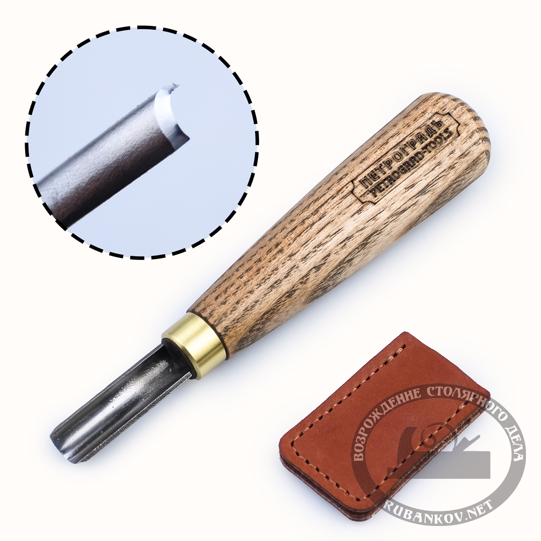 Резак по дереву, ПЕТРОГРАДЪ, полукруглая РК. Предназначен для резьбы по дереву, может использоваться для декорирования поверхности. Выполнен из инструментальной стали и закален до 60-61 HRC. Производство фабрика Петроградъ (Россия).