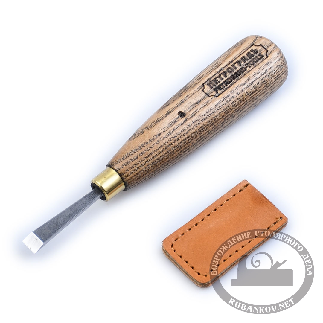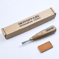 Конечно, этот резец может использоваться и для других задач при резьбе по дереву, например, как небольшая стамеска или резак для геометрической резьбы. Как и все инструменты ПЕТРОГРАДЪ, резак заточен и готов к работе. Для защиты режущей кромки резак комплектуется защитным кожаным чехлом.