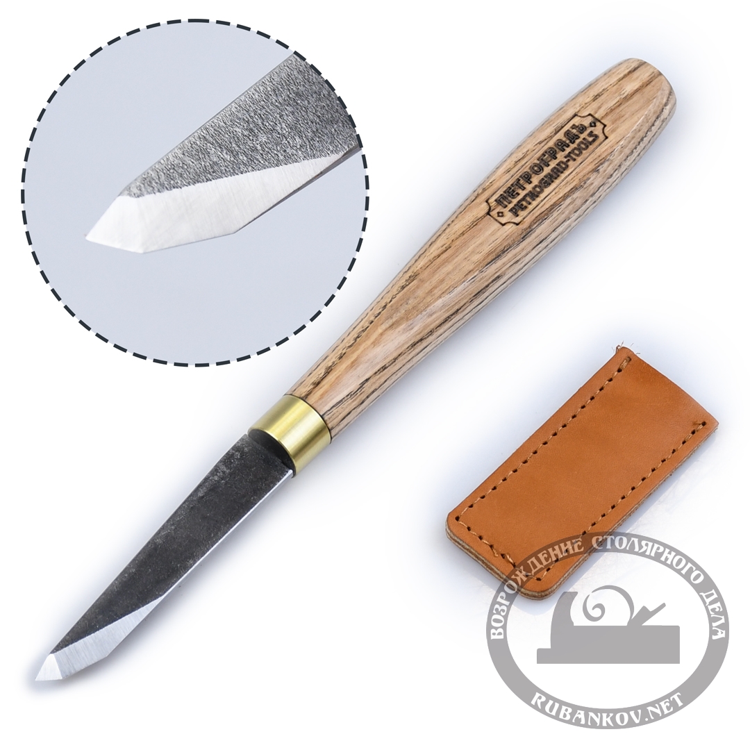Резаки ПЕТРОГРАДЪ, для работы в "технике одного резца" Игоря Фролова это резчицкий инструмент, созданный по эскизам Игоря Фролова. Применяются для резьбы по дереву, выполнены из инструментальной стали и закалены до 61 HRc. Производство фабрика Петроградъ (Россия).