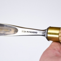 - На клинке указывается: буква "П" - логотип фабрики ПЕТРОГРАДЪ, номер профиля, ширина режущей кромки, длина клинка