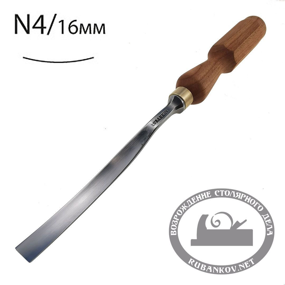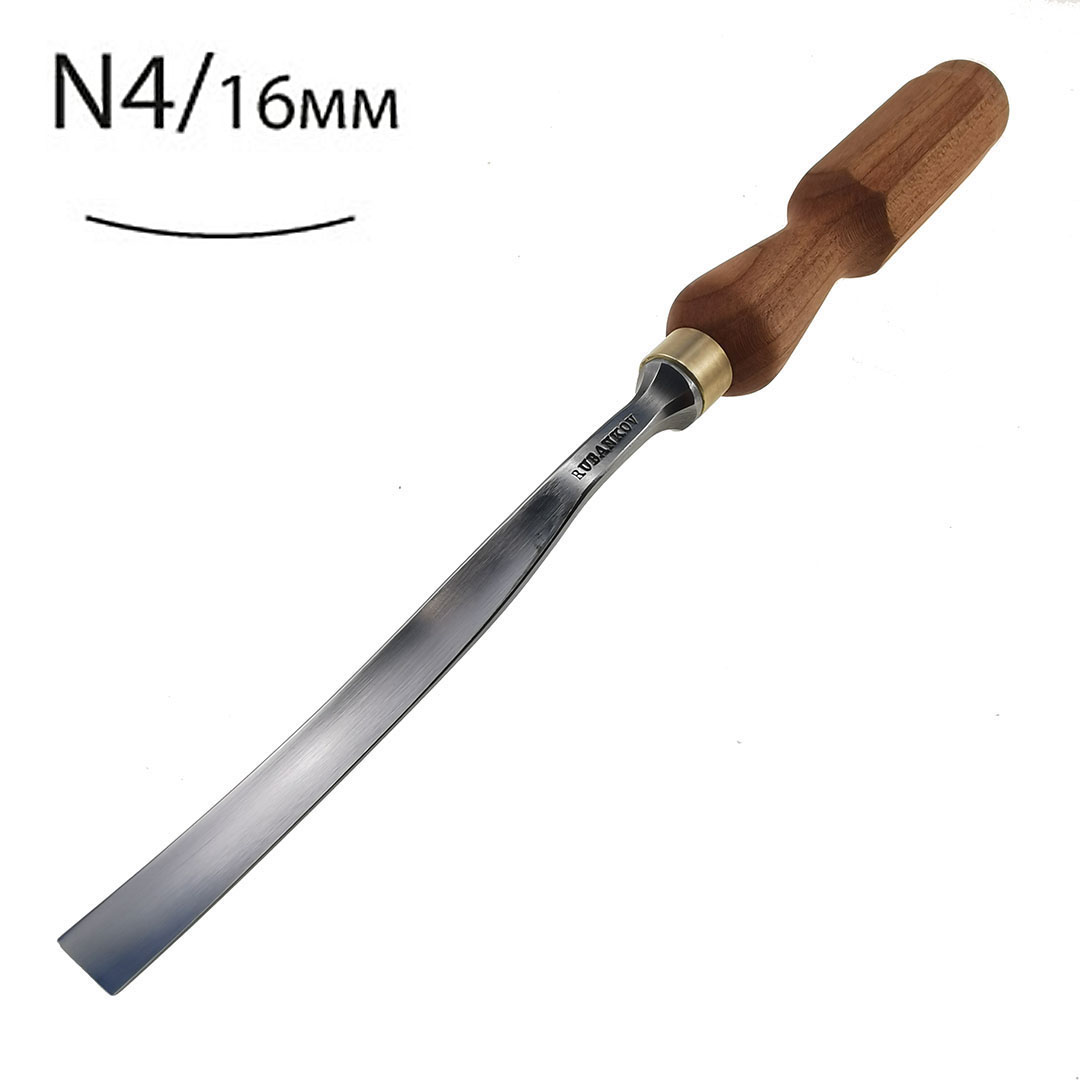 Стамески для резьбы по дереву, ПЕТРОГРАДЪ, полуклюкарзы N4, изогнутая стамеска с полукруглым профилем предназначена для выборки углублений. Такой тип стамесок очень удобен в барельефной, барельефной и скульптурной резьбе, особенно там, где прямой стамеской работать не удаётся в следствии ее формы. Производство – фабрика Петроградъ (Россия).