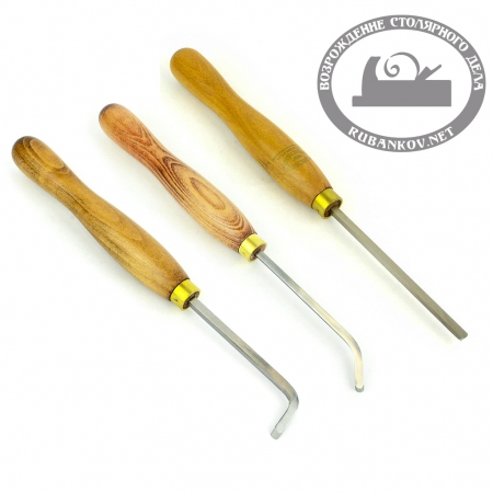 Выполнены из быстрорежущей стали (M2 HSS) твердостью 62-64 HRс. Полная длина 350 мм. Рукоять в месте крепления лезвия обжата латунным ободком. Производство Crown Hand Tools Ltd(Великобритания).