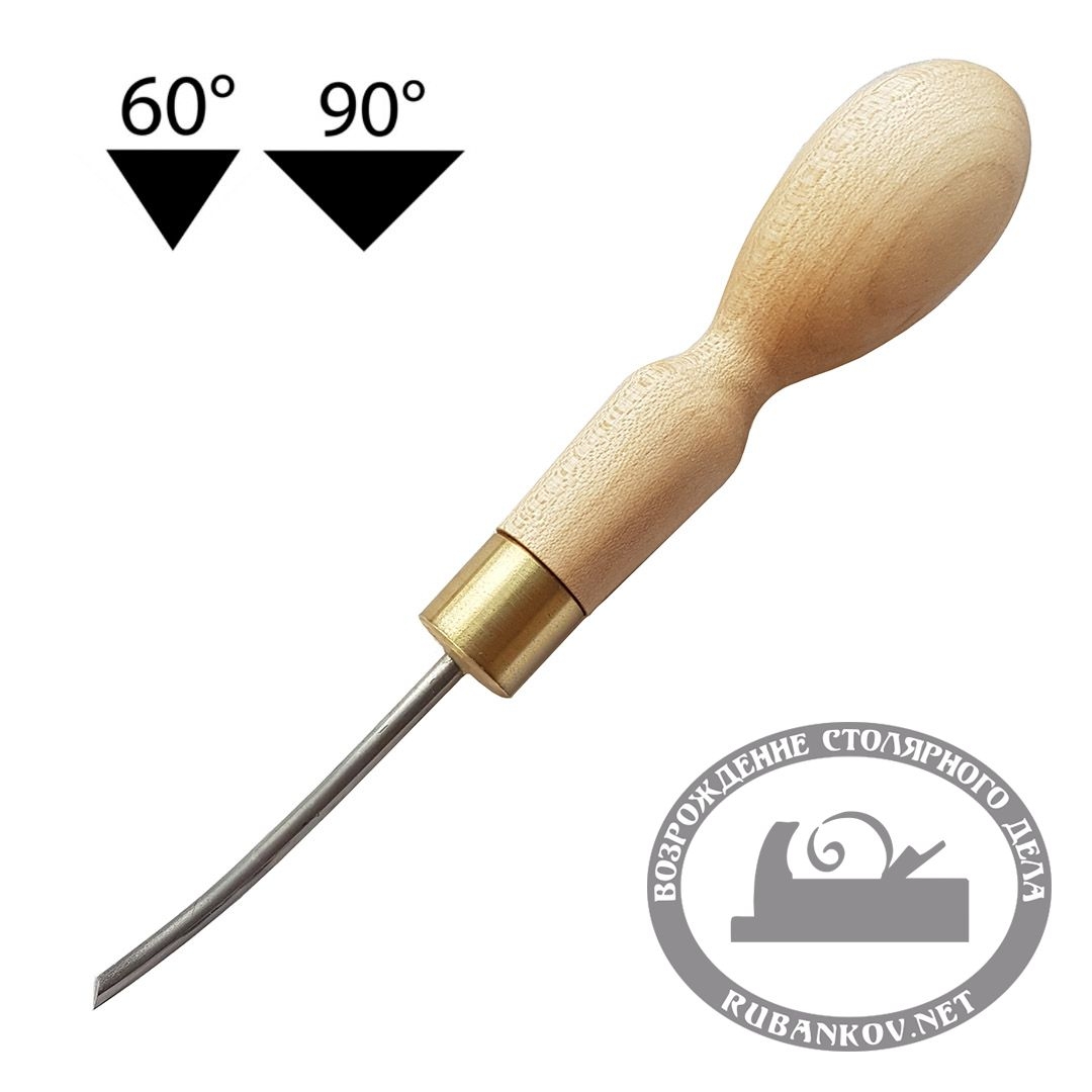 Резец-штихель угловой, 90 и 60 градусов. Используется для выполнения насечки без бордюров. Все резцы изготовлены из стали, прошли процесс закалки и обработки, чтобы служить вам долго. Деревянная рукоятка хорошо сбалансирована и удобно лежит в руке. Резцы для чекеринга закалены до твердости 59HRC.