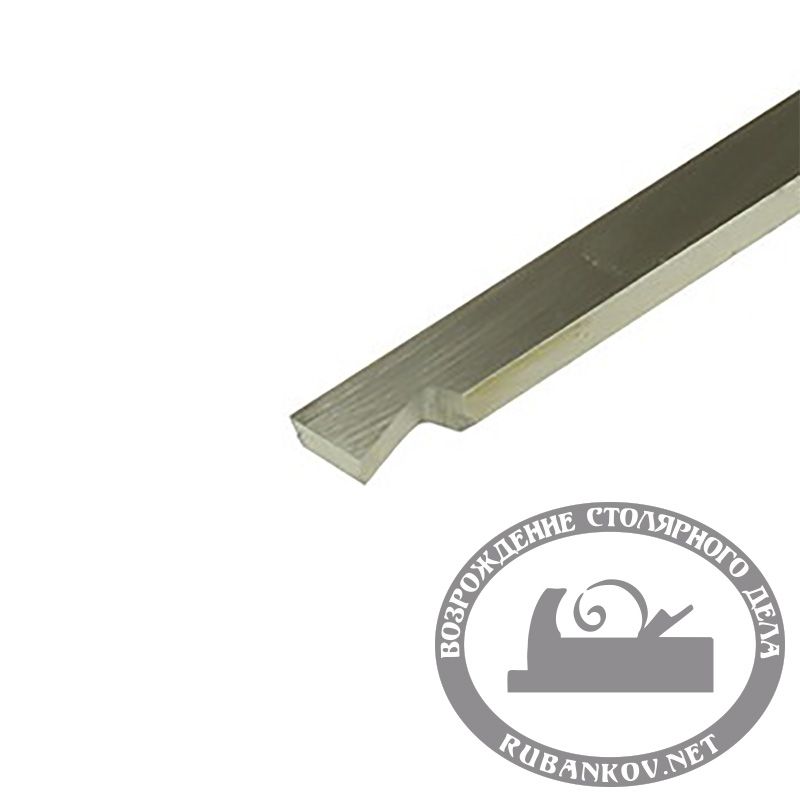 Резец токарный с остроугольным краем, используется для формирования ласточкина хвоста как наружного так и внутреннего для закрепления заготовок в патроне. Форма резца идеально совпадает с формой кулачков деревообрабатывающих патронов. Ширина резца 11мм, толщина 6,3мм. Выполнен из быстрорежущей стали (M2 HSS) твердостью 62-64 HRс, что позволяет резцам служить в 6 раз дольше, чем резцы из углеродистой стали. Полная длина резца 360 мм. Рукоять в месте крепления лезвия обжата латунным ободком.