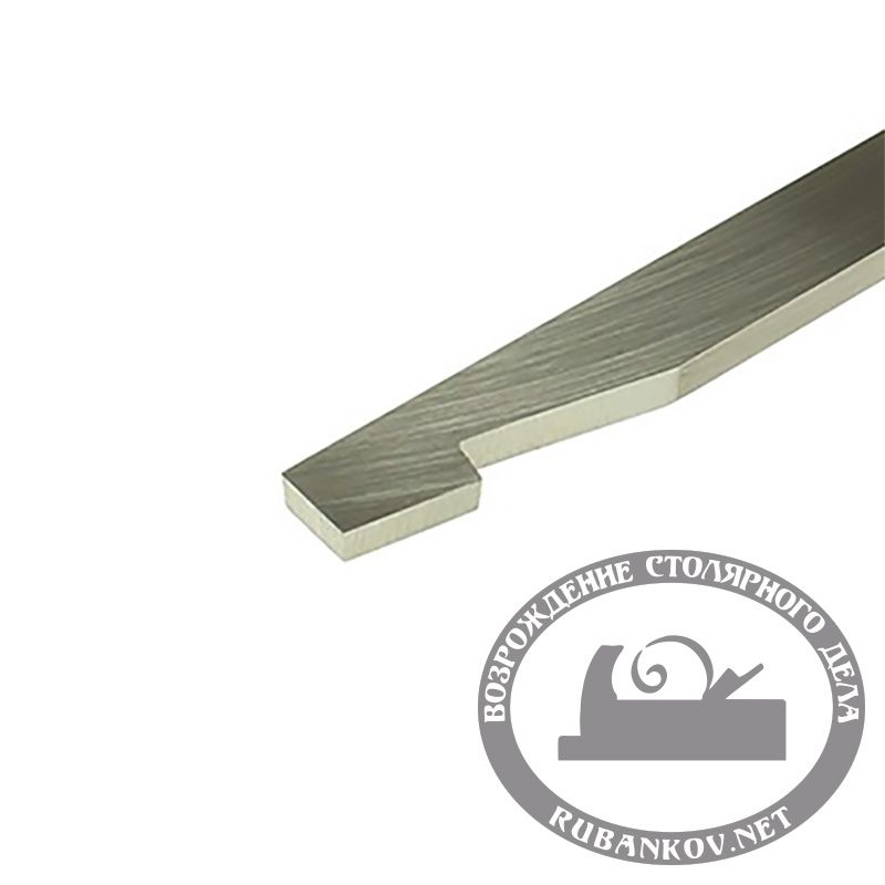 Резец токарный Scraper (циклевочный) с остроугольным концом, и выборкой, используется для чистовой обработки внутренней поверхности чаш, а также их подрезки. Ширина резца 18мм, толщина 6,3мм. Выполнен из быстрорежущей стали (M2 HSS) твердостью 62-64 HRс, что позволяет резцам служить в 6 раз дольше, чем резцы из углеродистой стали. Эти резцы оправдывают надежды даже самого требовательного мастера. Полная длина резца 380 мм. Рукоять выполнена из тонированного бука и удобно лежит в руках. В месте крепления лезвия рукоять обжата латунным ободком.