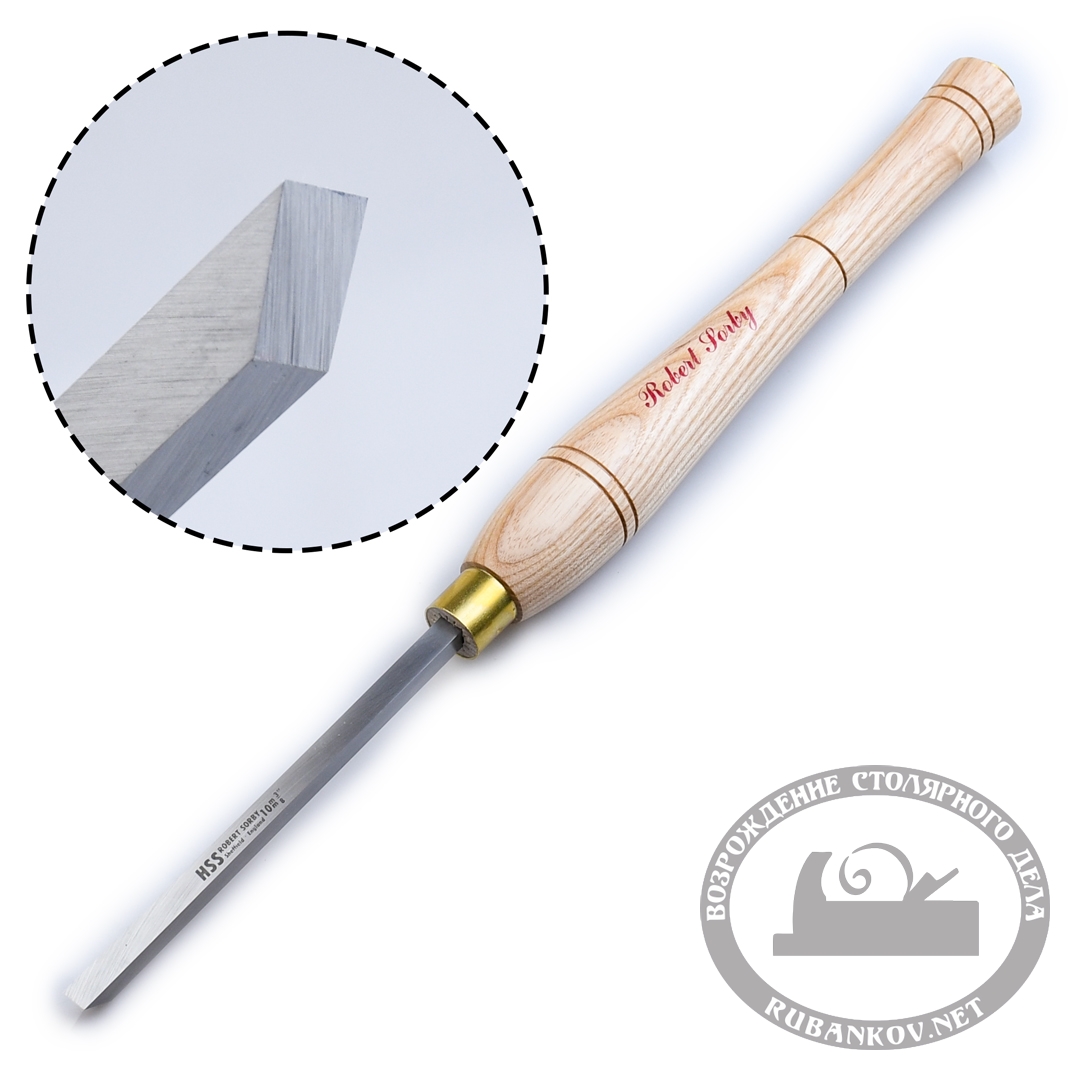 Токарный резец Robert Sorby HSS Bedan. Используется для создания создания коротких цапф. Также может использоваться как отрезной резец. Производство - Robert Sorby (Шеффилд, Великобритания).